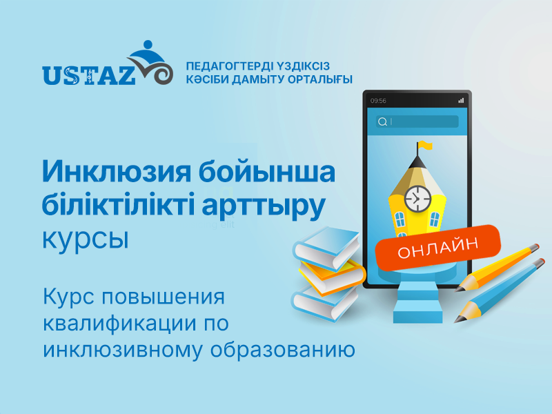 «USTAZ» педагогтерді үздіксіз кәсіби дамыту орталығы Сізді ҚР Оқу-ағарту министрлігімен келісілген, аттестацияға жарамды инклюзия бойынша біліктілікті арттыру курсына қатысуға шақырады.