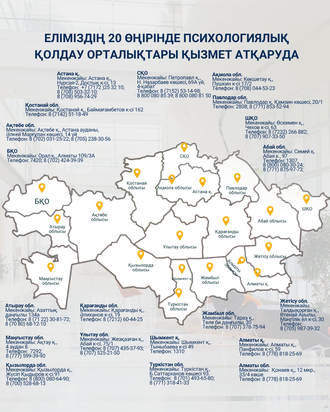Бүгінде еліміздің барлық өңірінде психологиялық қолдау орталықтары жұмыс атқаруда
