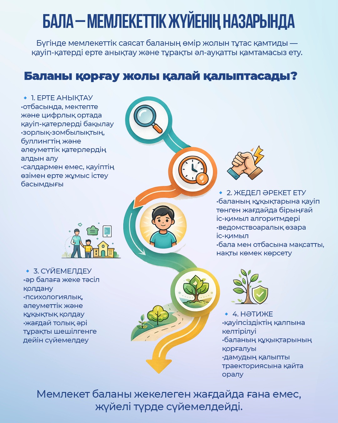 «Қазақстан балалары» тұжырымдамасы аясында баланы қорғаудың жүйелі тетігі қалыптастырылды – қауіп-қатерді ерте анықтау, оның алдын алу және балалардың тұрақты әл-ауқатын қамтамасыз ету