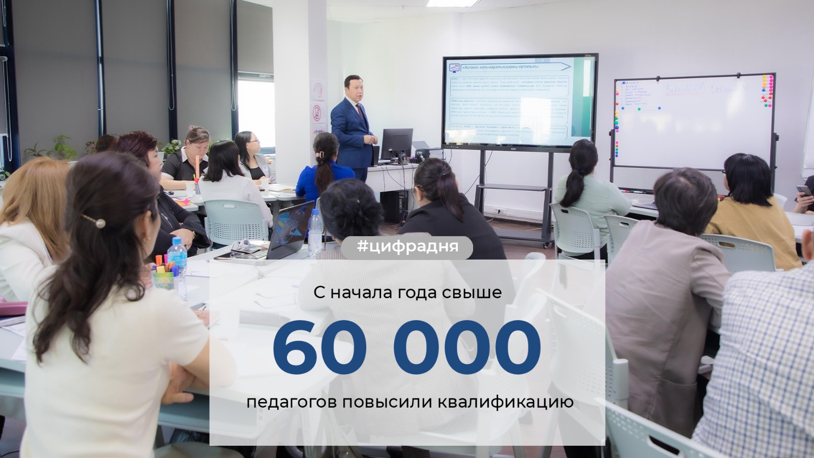 Национальный центр повышения квалификации «Өрлеу» Министерства просвещения системно реализуют программы непрерывного профессионального развития педагогов. С начала 2025 года курсы повышения квалификации прошли 63 208 учителей по всей стране. Среди них значительно выше доля учителей сельских школ - 55%.